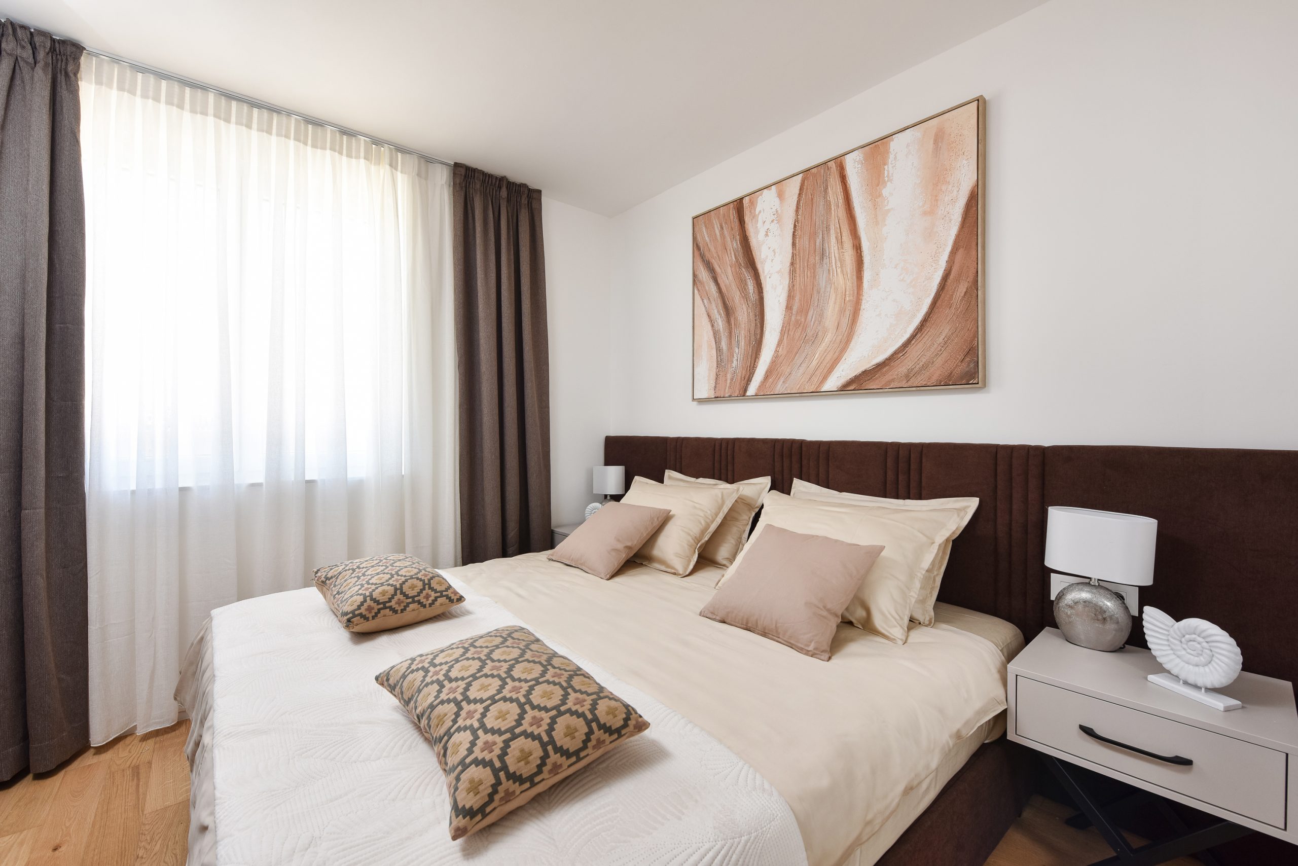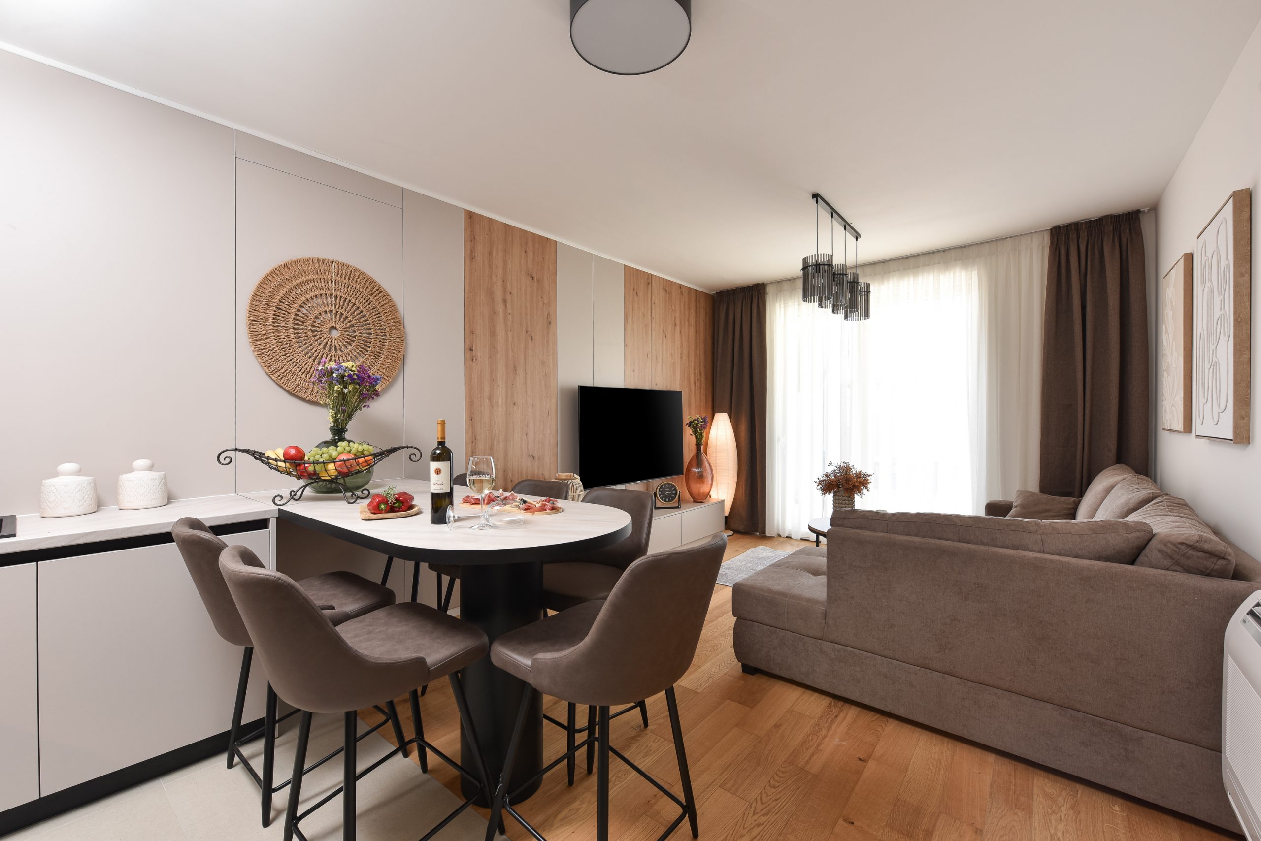 This apartment is perfectly suited for families or groups seeking flexibility and comfort. Two separate bedrooms and a spacious living area ensure both privacy and shared living space in a contemporary city environment.